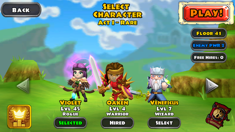 -Never fight in the same dungeon twice! Climb your way through 100 levels divided into 5 difficulty levels.