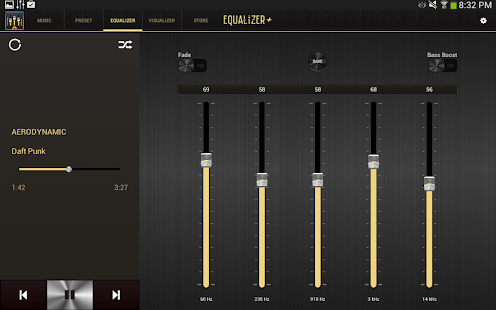 Tailor your sound to your taste with Equalizer+! 80% Off the Full Version right now! Equalizer+ the new standard when it comes to audio music player! A must have to listen to your favorite songs and playlists! Boost and improve your sound quality and volume thanks to Equalizer+! Equalizer + is both a music track player and a frequency equalizer. Access your own music library directly from the app. Set the frequencies you like for your songs and save your presets. Equalizer + enables you to control 5 different band frequencies. Adjust each filter to bring out the best in your music. In addition to the low frequency filters, youll have the possibility to amplify even more your bass sounds thanks to the Bass Booster option. Finally, youll be able to visualize your sound thanks to a spectrum analyser, directly available from the app.